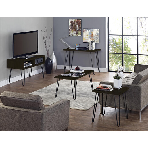 Verschönern Sie Ihren Raum mit dem Retro-Couchtisch »Owen«. Dieser schlanke Tisch passt problemlos in kompakte Räume und lässt kleine Räume weniger überladen erscheinen. Mit einer Tragfähigkeit von bis zu 15 kg eignet sich der Tisch zur Präsentation von Büchern, Sammlerstücken oder Dekorationsgegenständen. Graue Metallbeine im Hairpin-Stil sorgen für ein lustiges Retro-Feeling, während die Tischplatte aus gealterter brauner Eiche ein sauberes industrielles Erscheinungsbild bietet. Vor dem Gebrauch ist nur eine minimale Montage erforderlich.