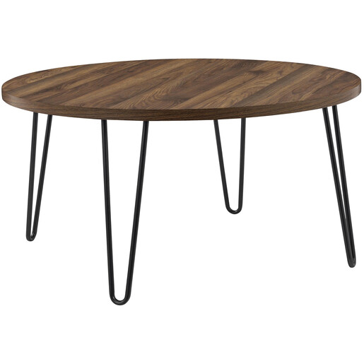 Runder Couchtisch Owen runder Wohnzimmertisch in Holzoptik, Metallbeine in Haairpin-Design in walnuss